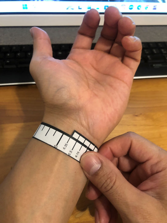 Use our printable wrist measurement tool or a flexible tape measure.